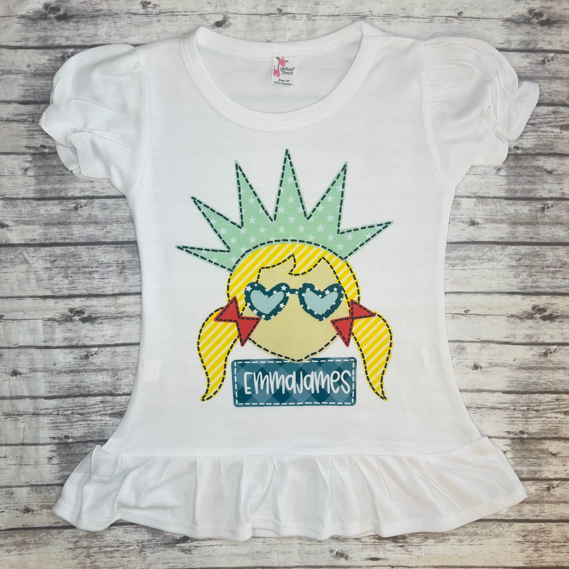 This Pigtail Lady Liberty is the perfect edition to any patriotic little girl's wardrobe. With a detailed Lady Liberty design, it is sure to be a hit. Made from quality materials, it will last through many occasions and is sure to bring a smile to any child's face.